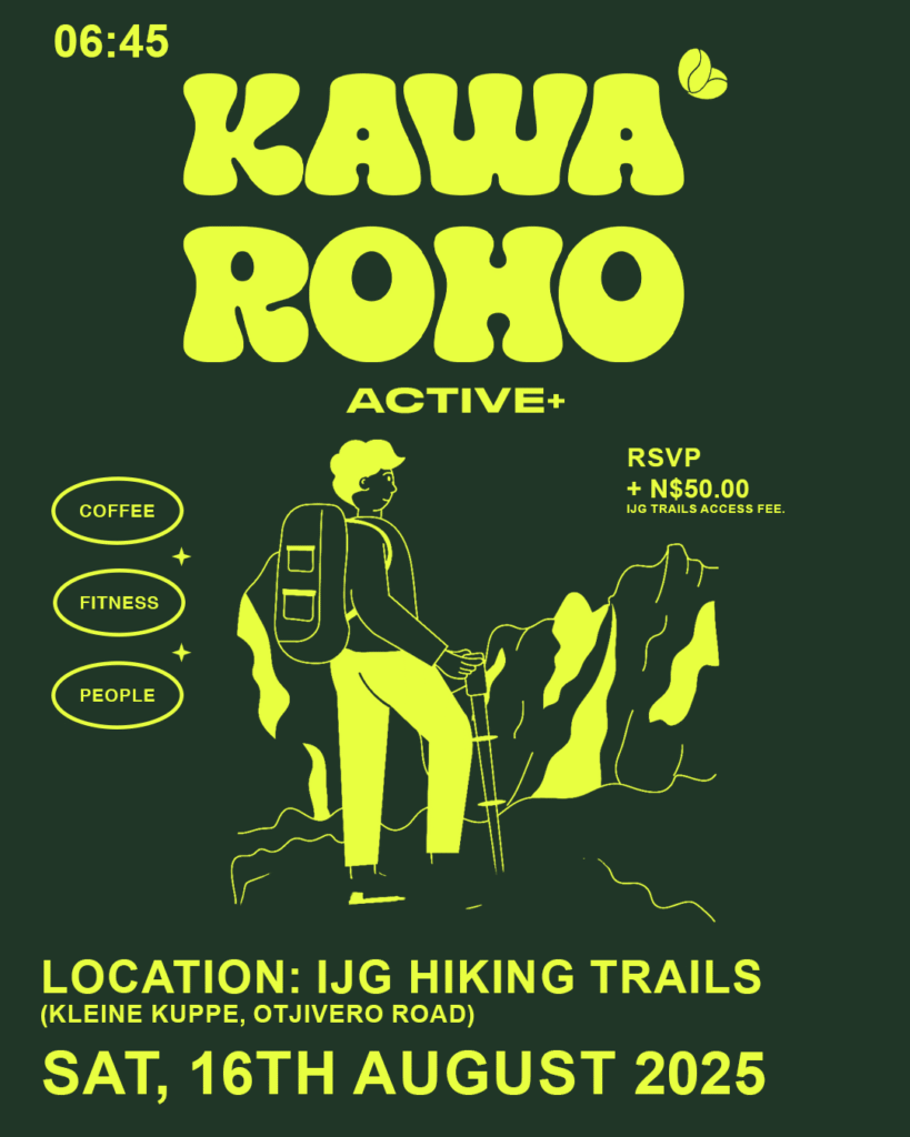 Kawa Roho Active+ #TakeAHike Bringing together a community of fitness and coffee enthusiasts to create the perfect blend of ACTIVE+ Coffee + Fitness + People RSVP (N$50:00)Â